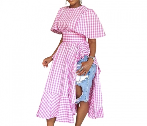 Cap Sleeve Short Sleeves O-Neck Asymmetrical Mid-Calf Dress