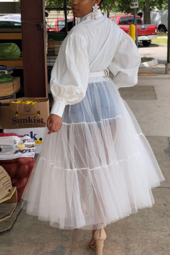 V-Neck Ruffled Solid Long Sleeve Wrap Dress