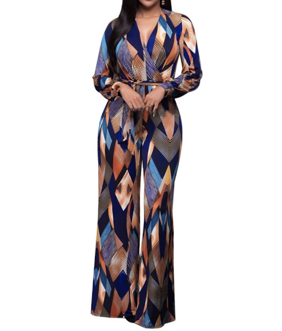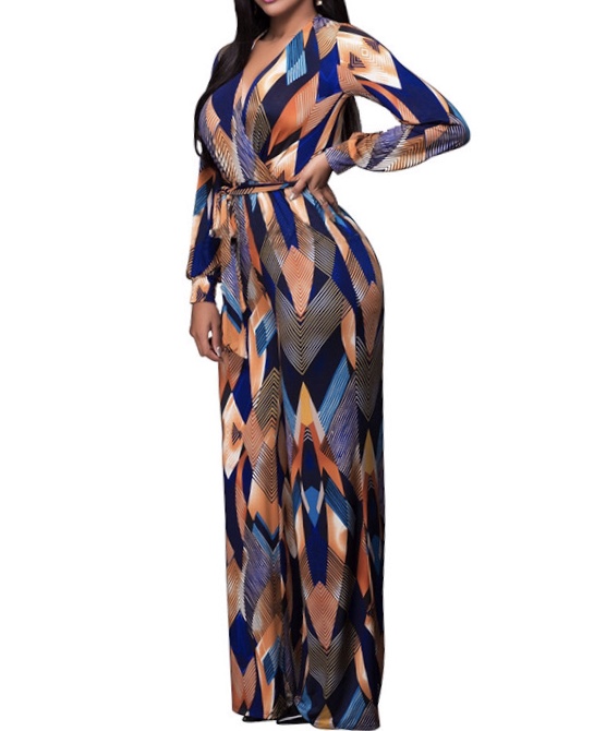 Euro Camera Printed V-Neck Smart Waist Jumpsuit