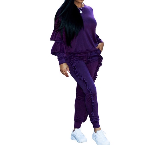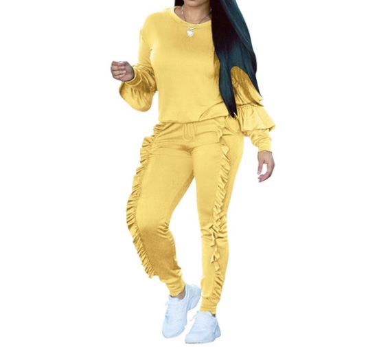 Frill Trim Tired Sleeve Casual Women Suit