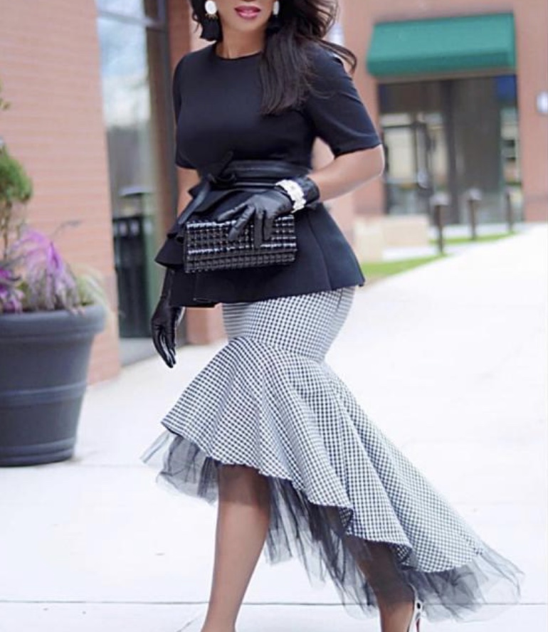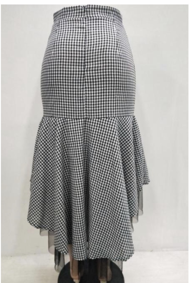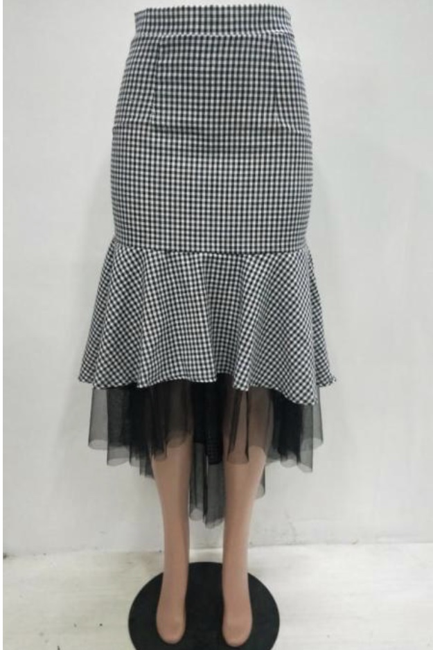 Grey Polyester Elastic Fly Mid Patchwork Mesh Print Asymmetrical Skirt