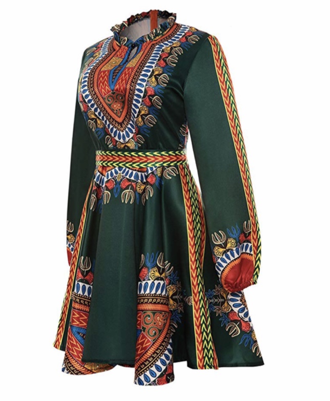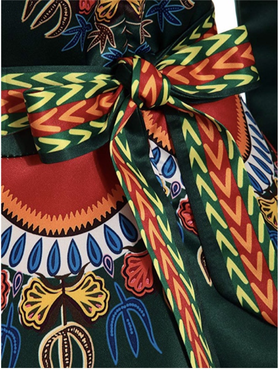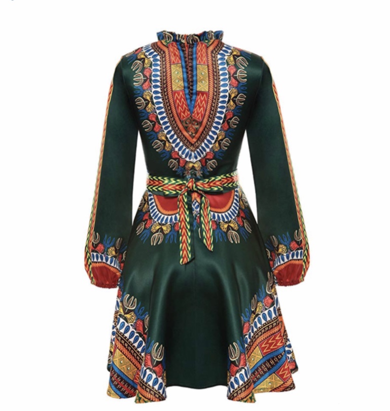 O-Neck Step Skirt Mid-Calf Patchwork Long Sleeve Dress