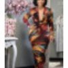 Multi-Color Long Sleeve Floor Length Dress