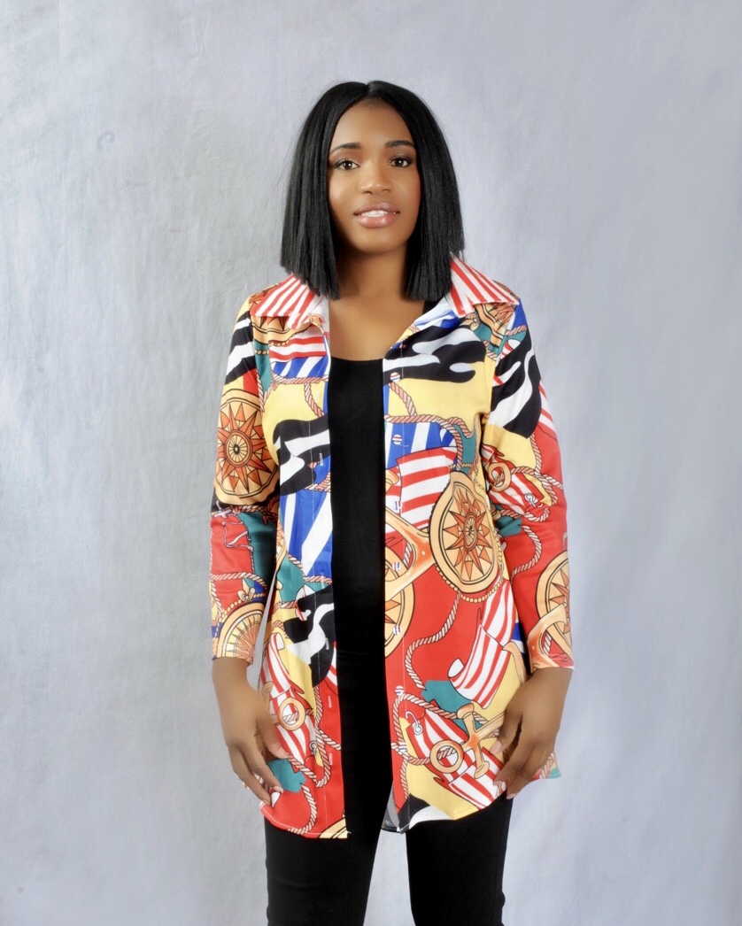 Casual Style Collarless Long Sleeve Colorful Stripe Women’s Cardigan