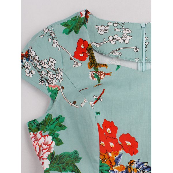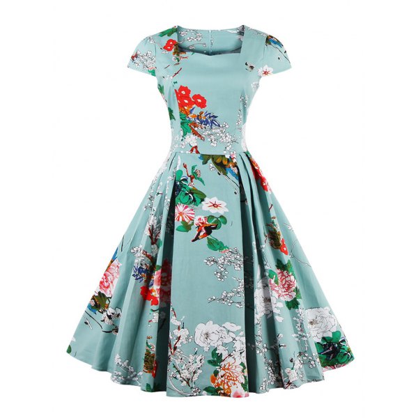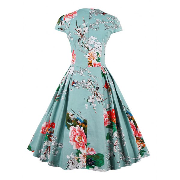 Retro Sweetheart Neck Cap Sleeve Floral Print Flare Dress